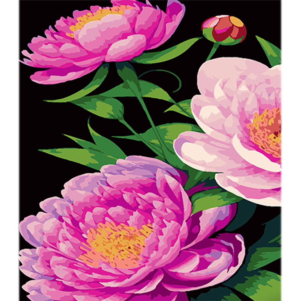 Картина за номерами Півонії у відтінках рожевого на чорному фоні 40х50см, термопакет, ТМ Стратег, Україна
