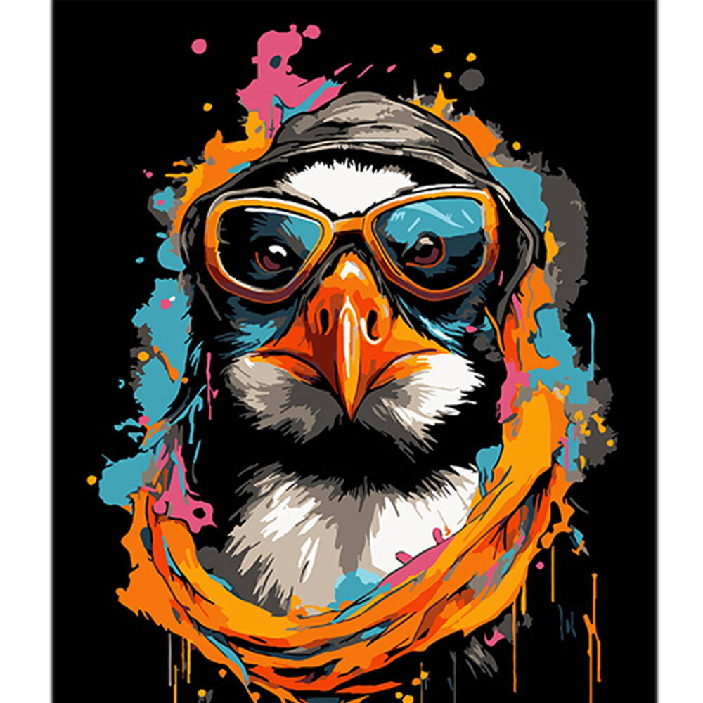 Картина за номерами Кольоровий пінгвін на чорному фоні 40х50см, термопакет, ТМ Стратег, Україна
