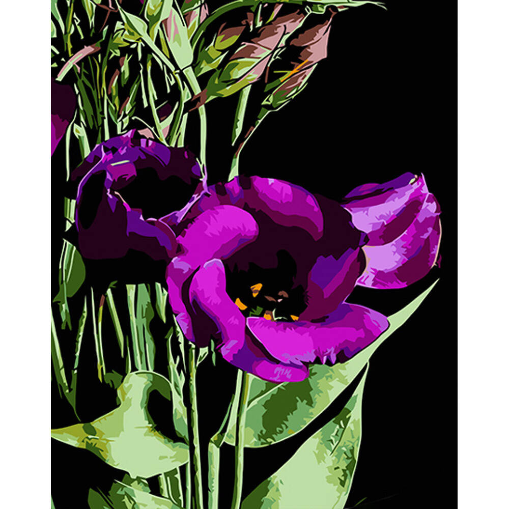 Картина за номерами Фіолетові квітки на чорному фоні 40х50см, термопакет, ТМ Стратег, Україна