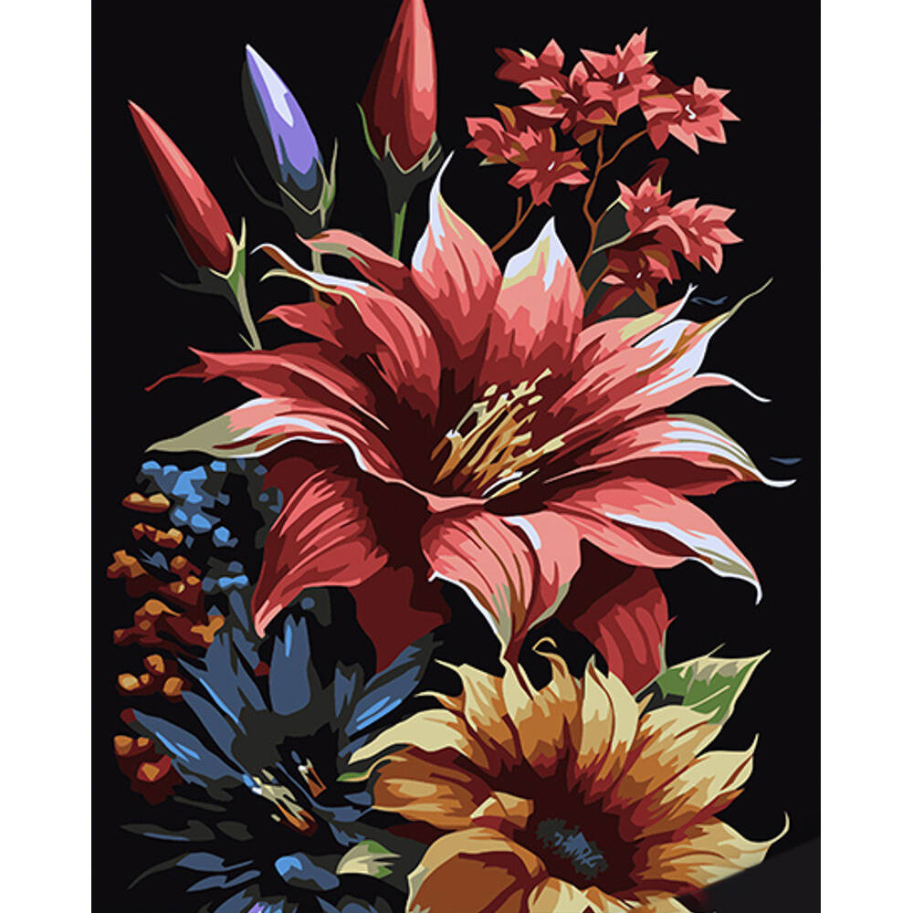 Картина за номерами Ексклюзивний букет на чорному фоні 40х50см, термопакет, ТМ Стратег, Україна