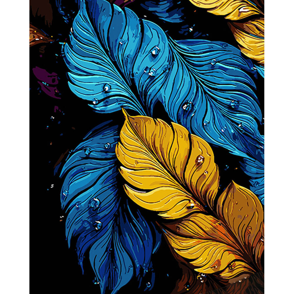 Картина за номерами Абстрактне пір'я на чорному фоні 40х50см, термопакет, ТМ Стратег, Україна