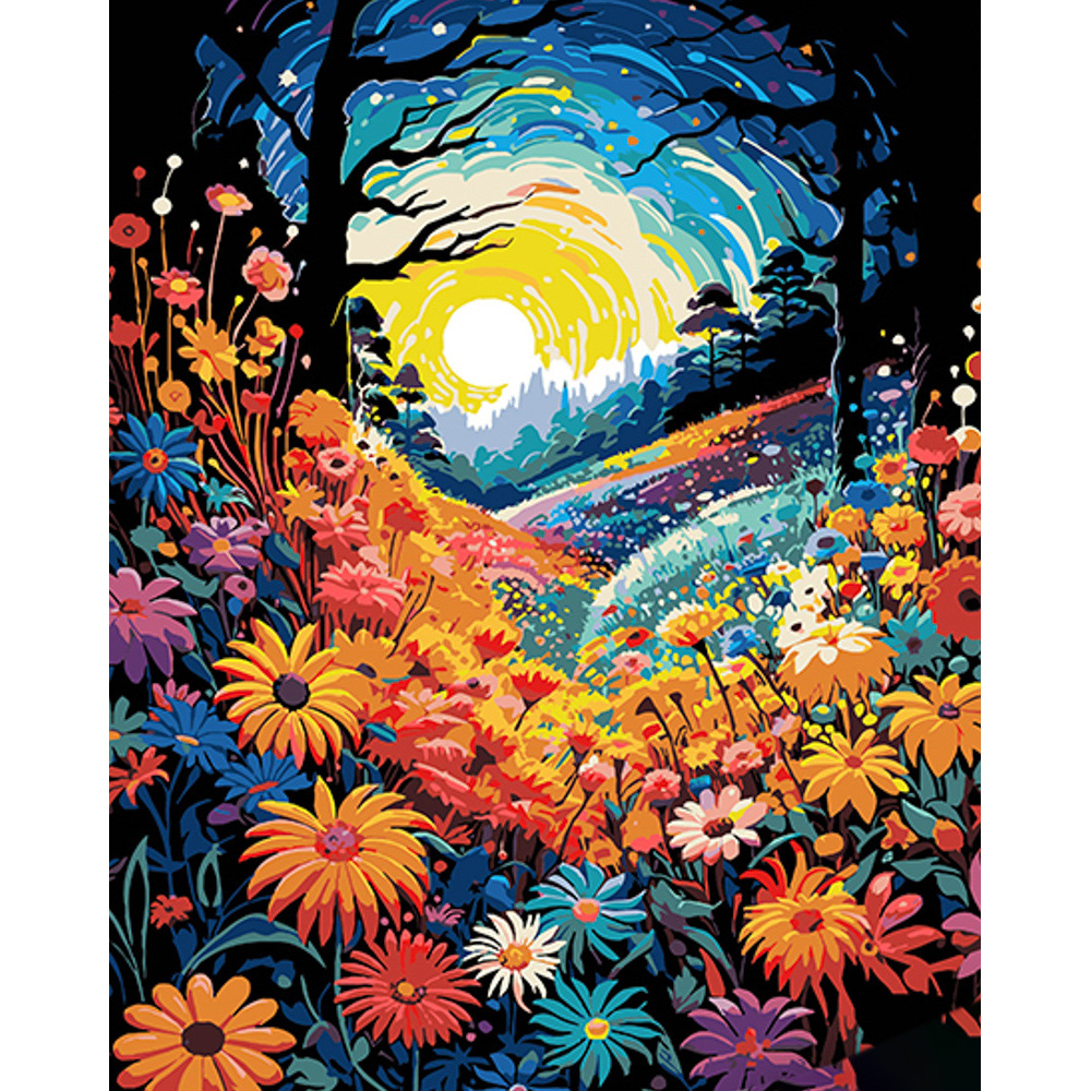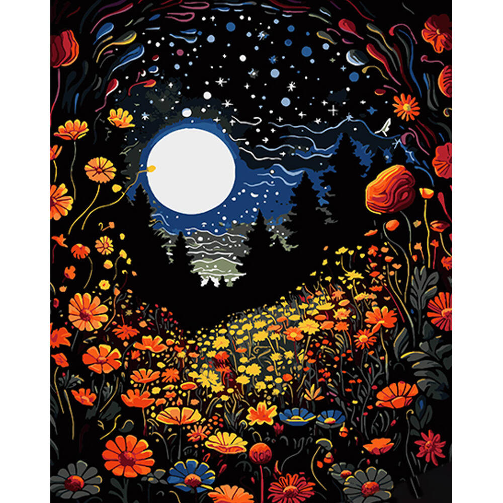 Картина за номерами Нічний квітковий ліс на чорному фоні 40х50см, термопакет, ТМ Стратег, Україна