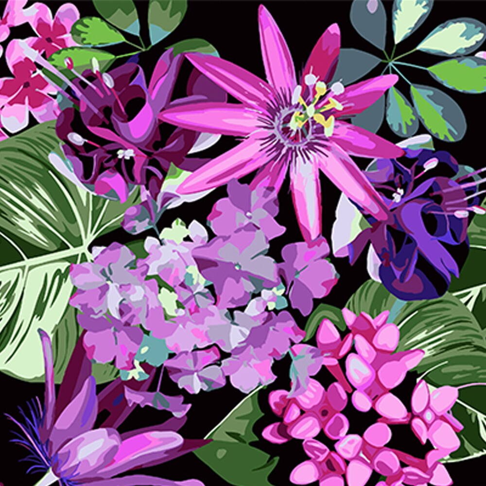 Картина за номерами Квітковий ліс на чорному фоні 40х50см, термопакет, ТМ Стратег, Україна