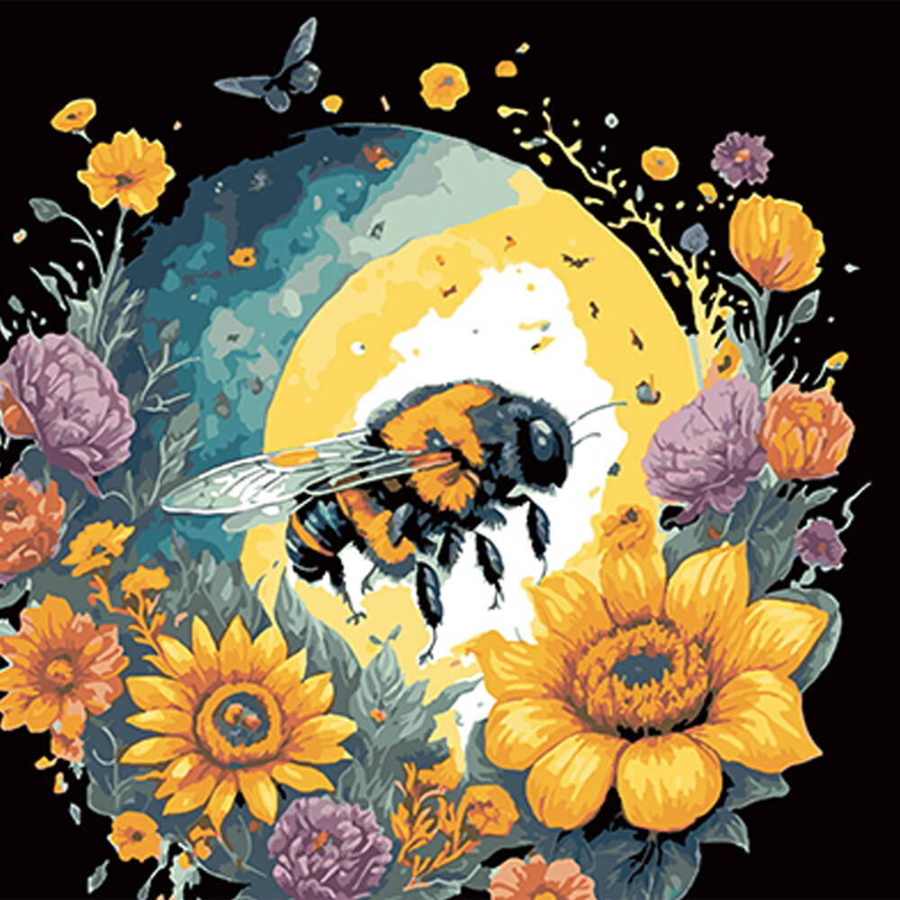 Картина за номерами Бджола і квіткова краса на чорному фоні 40х40см, термопакет, ТМ Стратег, Україна