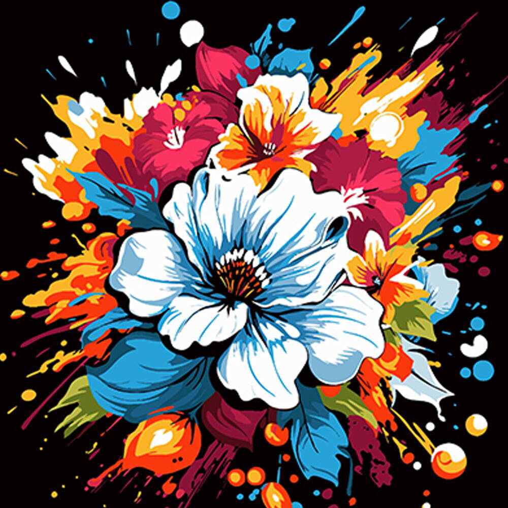 Картина за номерами Квітковий вибух на чорному фоні 40х40см, термопакет, ТМ Стратег, Україна