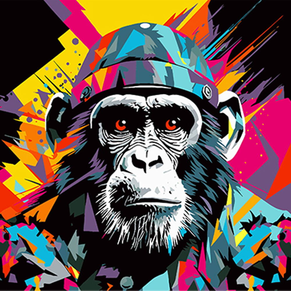 Картина за номерами Поп-арт військової шимпанзе на чорному фоні 40х40см, термопакет, ТМ Стратег, Україна
