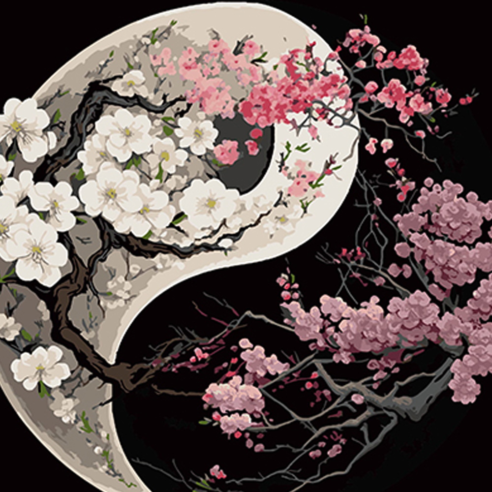 Картина за номерами Симетрія Інь-янь з квітами на чорному фоні 40х40см, термопакет, ТМ Стратег, Україна