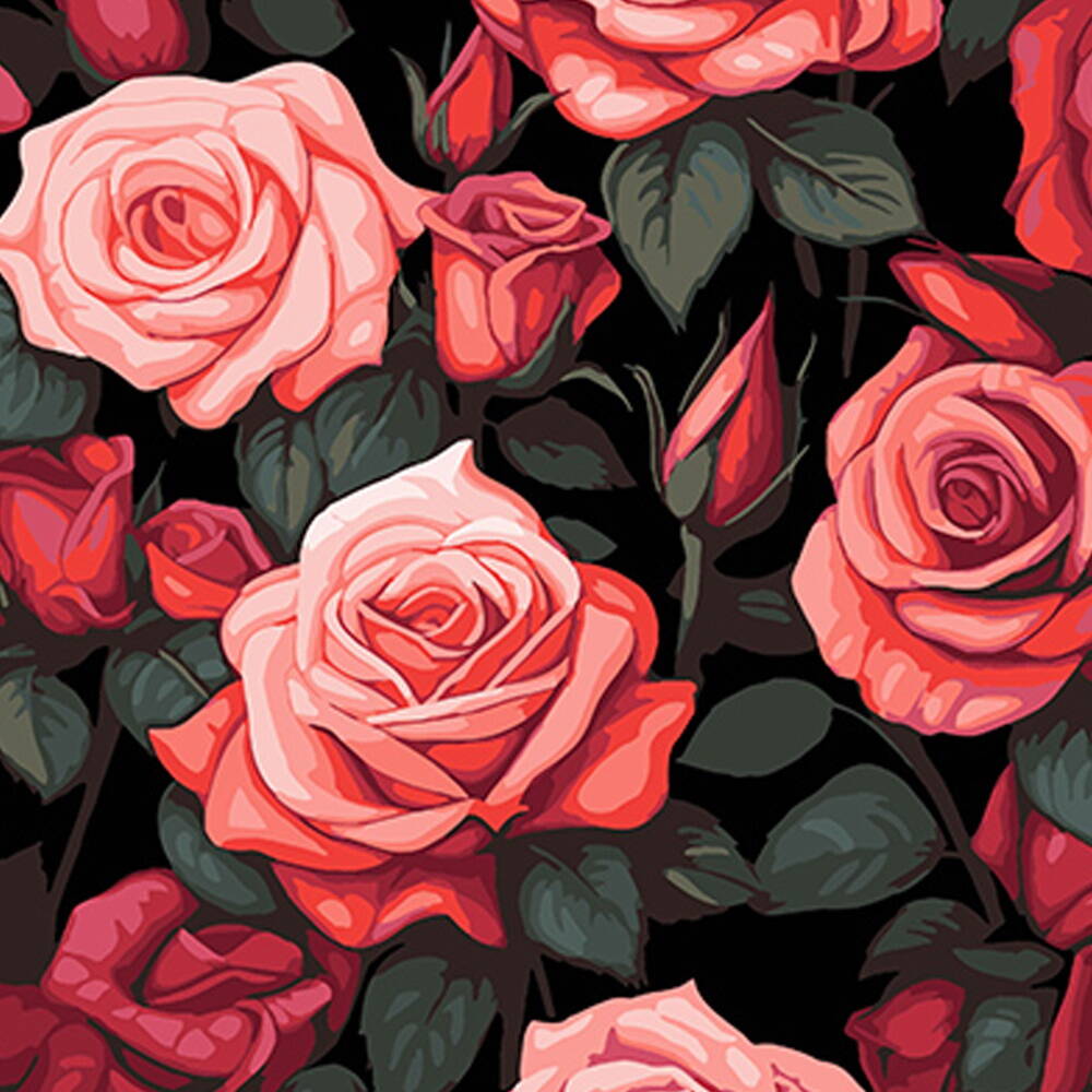 Картина за номерами Трояндова мрія на чорному фоні 40х40см, термопакет, ТМ Стратег, Україна