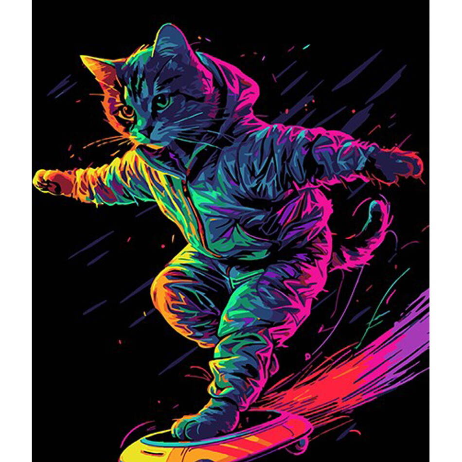 Картина за номерами Кіт на скейті на чорному фоні 30х40см, термопакет, ТМ Стратег, Україна