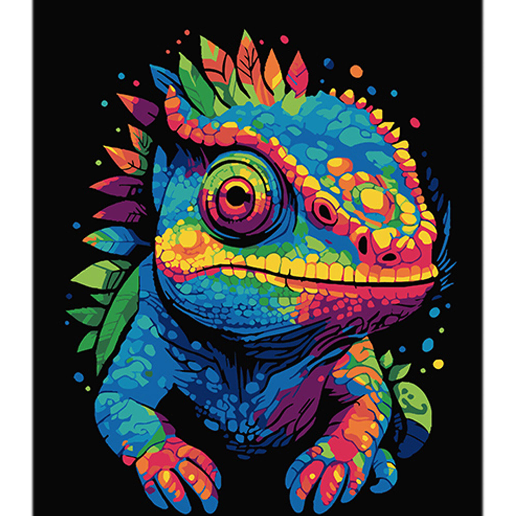 Картина за номерами Хамелеон і калейдоскоп кольорів на чорному фоні 40х50см, термопакет, ТМ Стратег, Україна