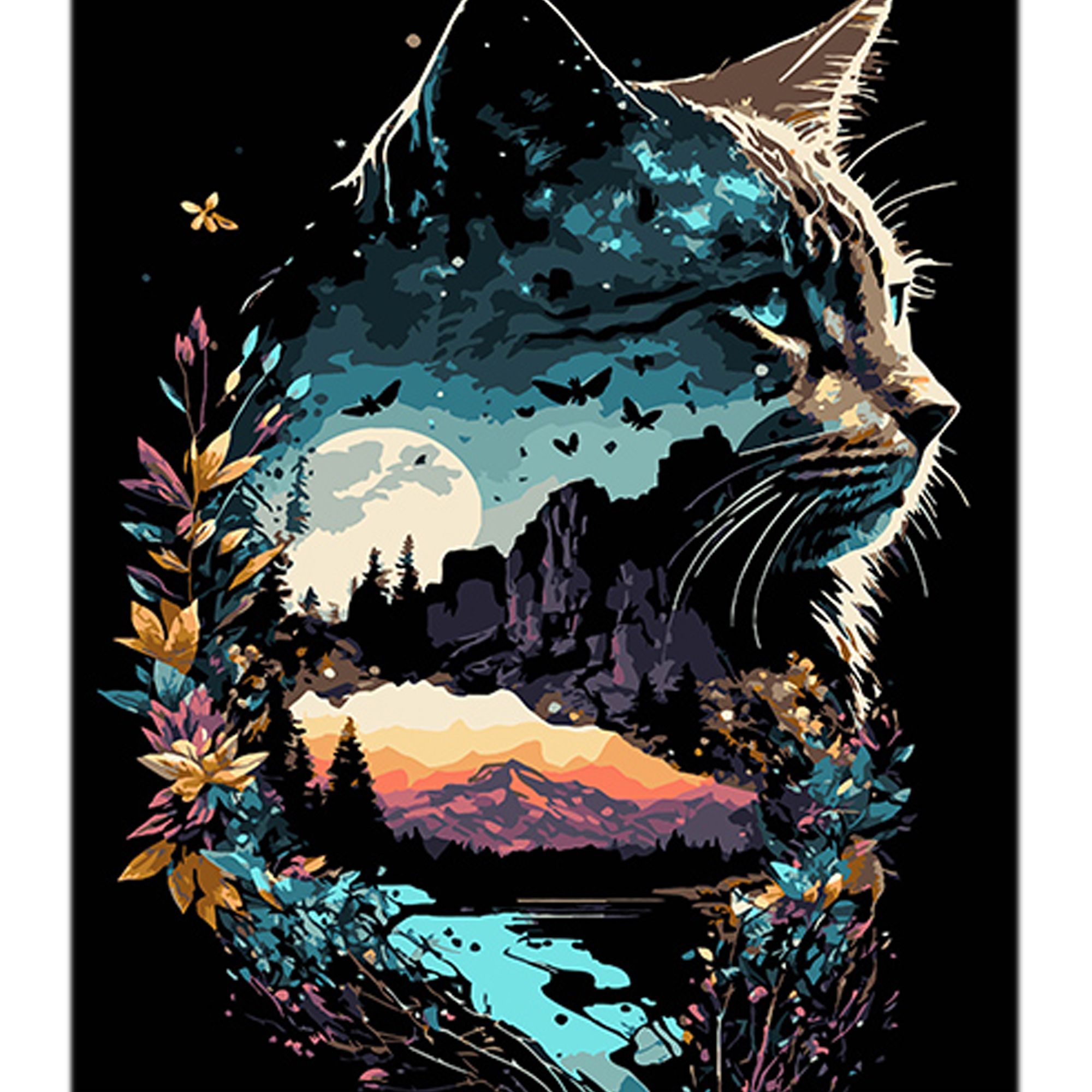Картина за номерами Котяче відображення природи на чорному фоні 40х50см, термопакет, ТМ Стратег, Україна