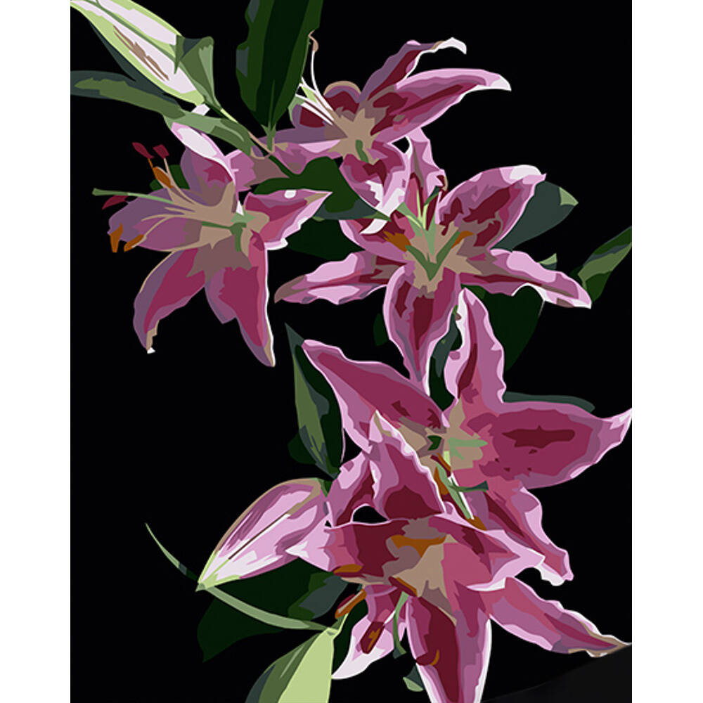 Картина за номерами Квітучі лілії на чорному фоні 40х50см, термопакет, ТМ Стратег, Україна