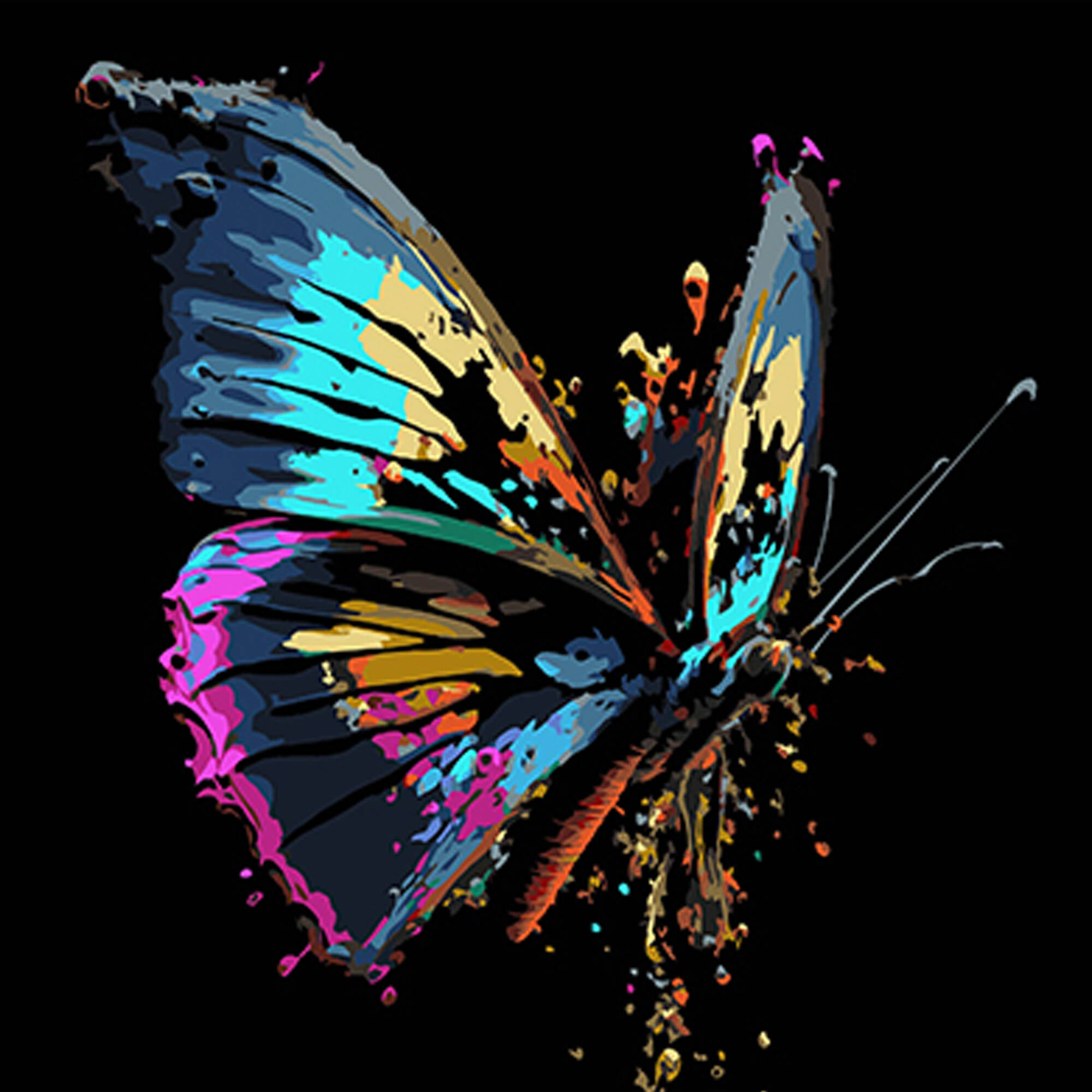 Картина за номерами Кольоровий метелик на чорному фоні 40х40см, термопакет, ТМ Стратег, Україна