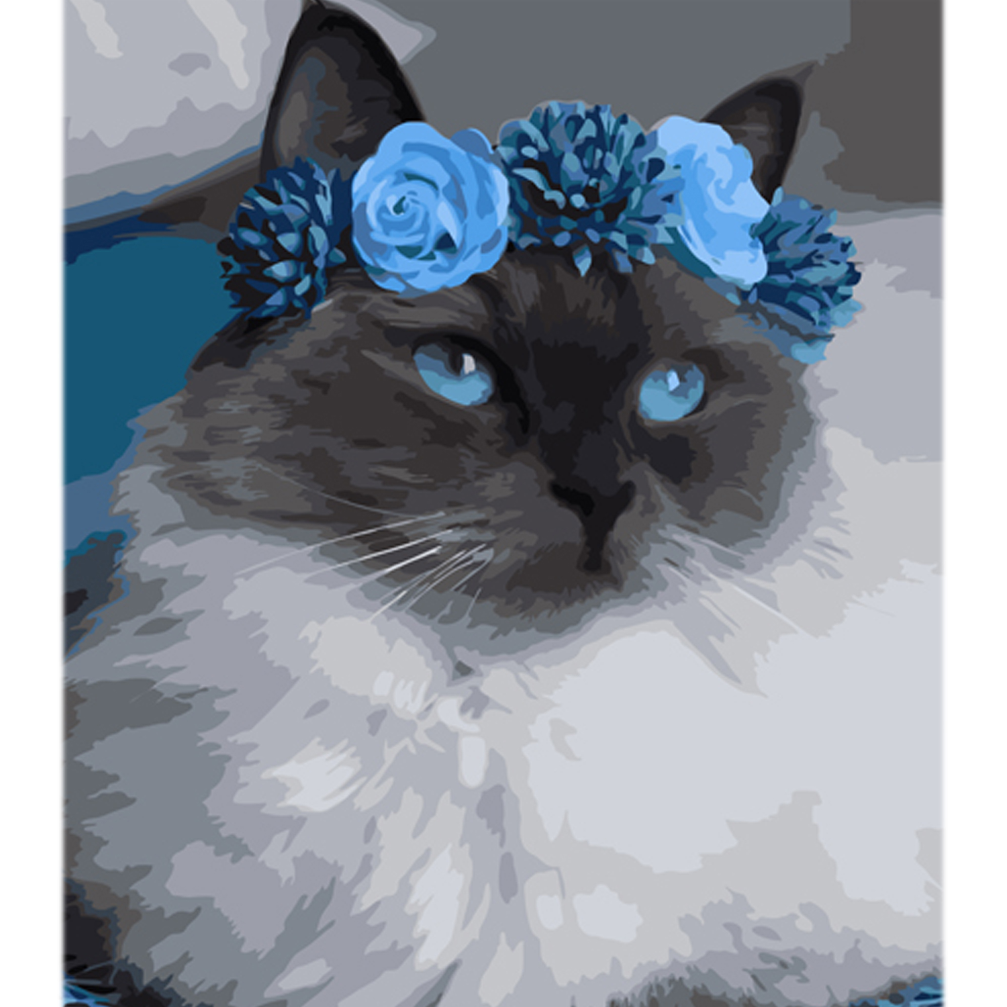 Картина за номерами Котик у блакитному віночку на кольоровому фоні 40х50см, термопакет, ТМ Стратег, Україна