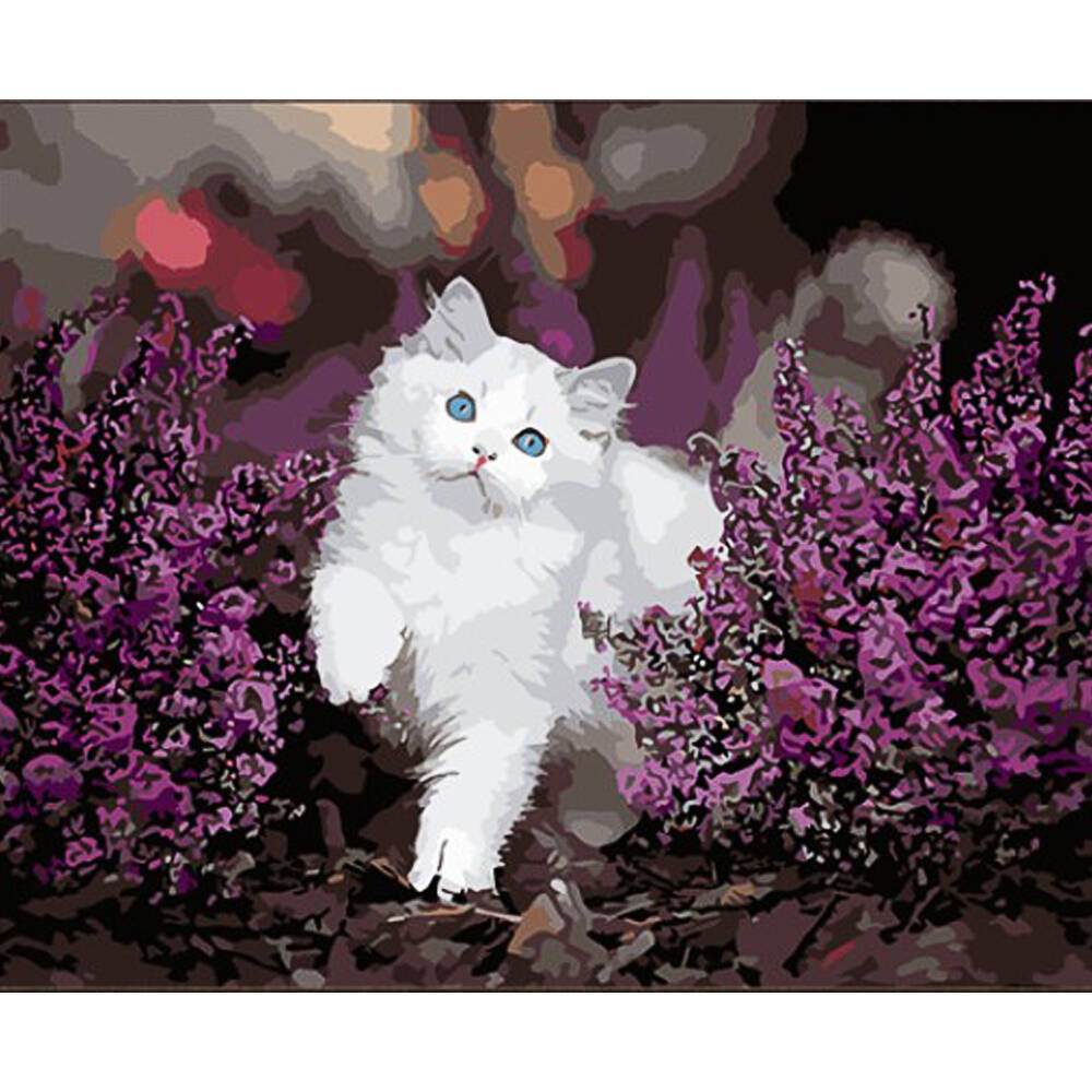 Картина за номерами Котик в квітах 40*50см, термопакет, ТМ Brushme, Україна