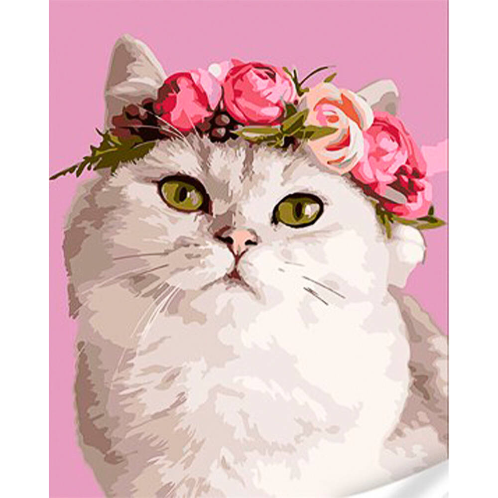 Картина за номерами Кішка з вінком із квітів 30х40см, термопакет, ТМ Стратег, Україна