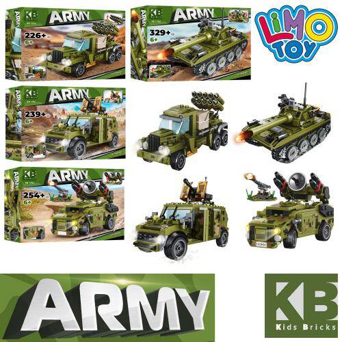 Конструктор LIMO TOY військовий транспорт, від 226 дет., 4шт (4 види) в диспл., 26*19*23,5 см (48шт)