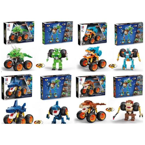 Конструктор 2в1(робот+транспорт), гумові колеса, від 147дет, 4 види, в кор. 26*19,5*4,5см (84шт)
