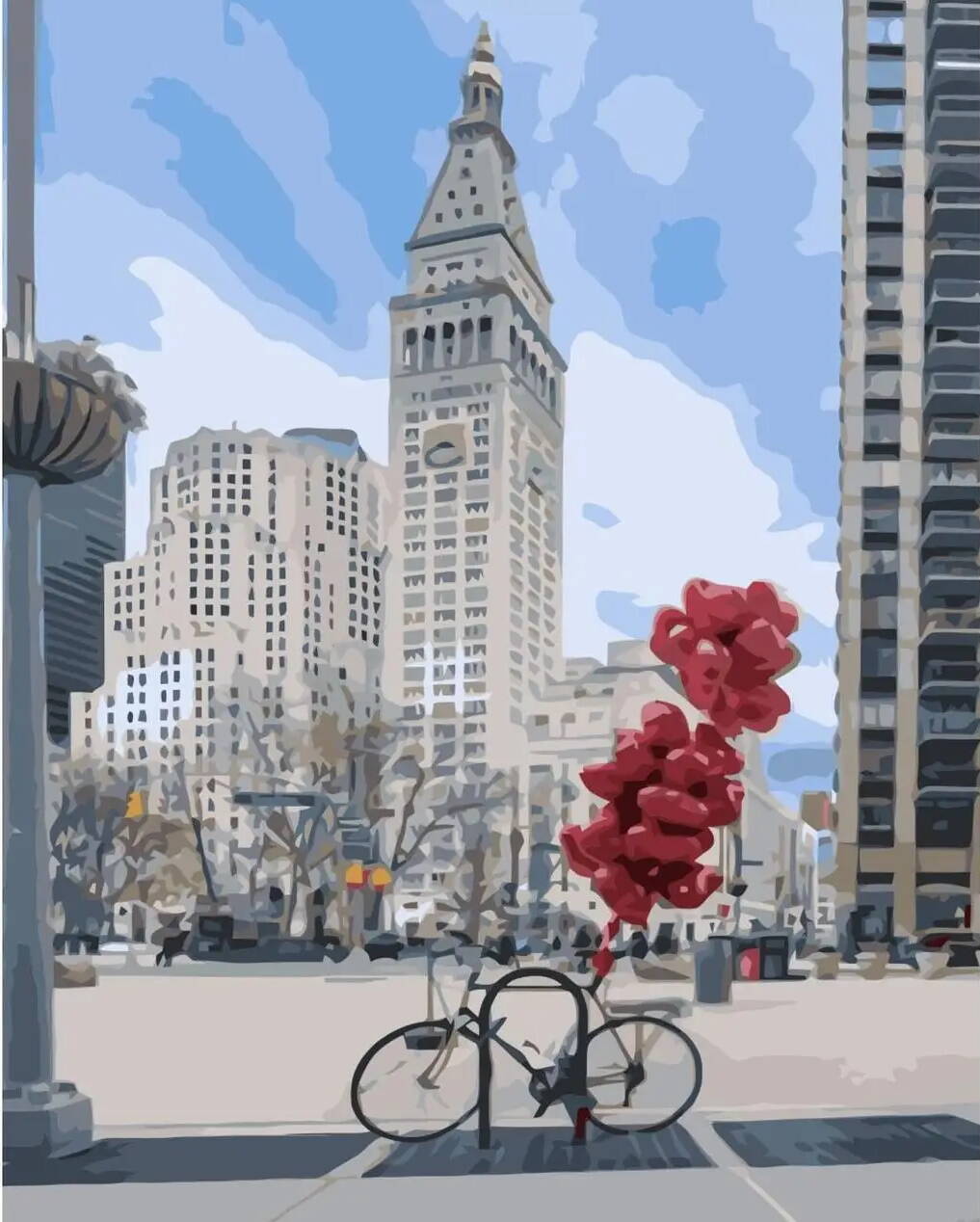 Алмазна мозаїка Припаркований велосипед із кульками 40х50см круглі каміння-стрази, в кор. 51*43*3см, ТМ Стратег, Україна