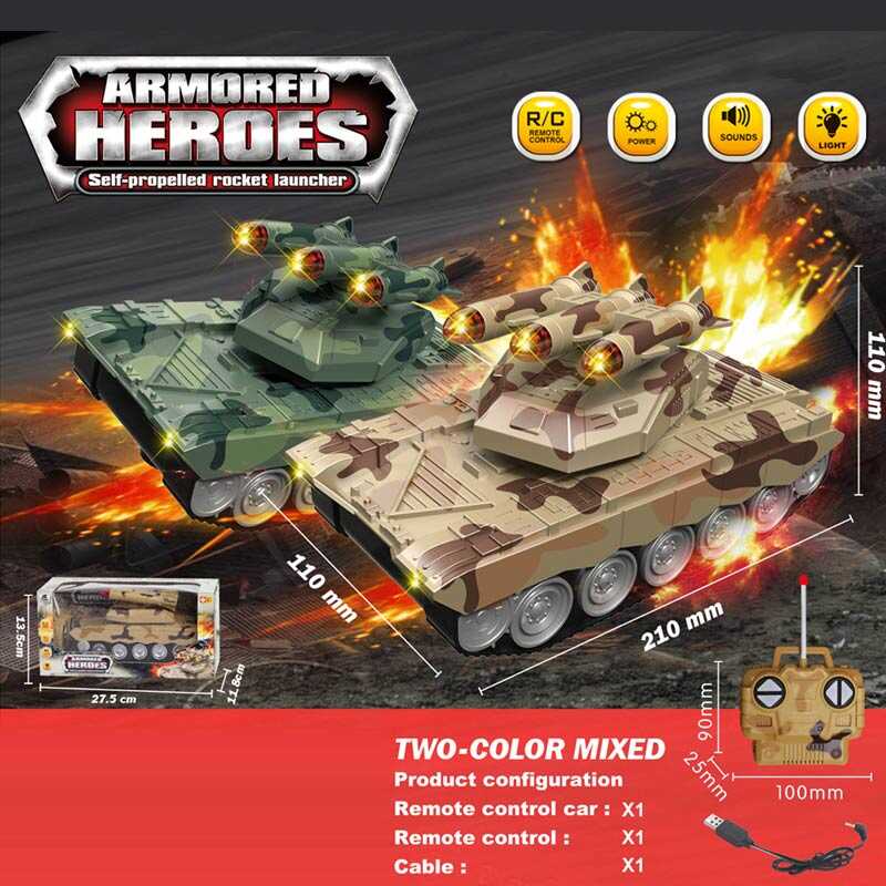 Танк на радіокеруванні 2 кольори, підсвічування фар, звуки, акумулятор 3.7V, в кор. 28-14-12см (60шт)