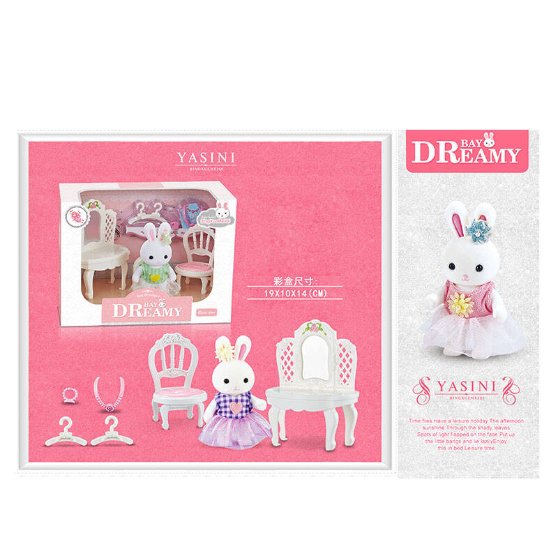 Ігровий набір з флоксовими тваринами "Happy Family", туалетний столик, в наборі фігурка, прикраси, кор. 19*10*14см (96шт/2)