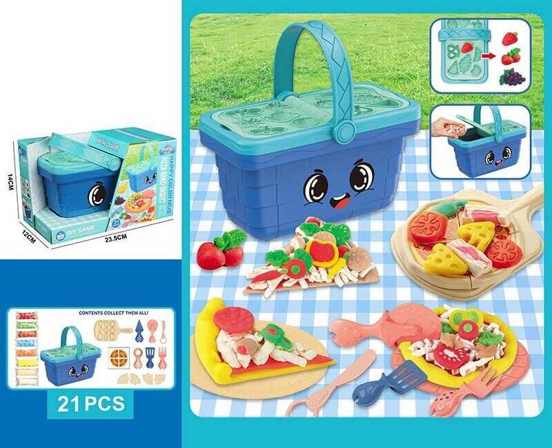 Тісто для ліплення "Піца", 21 елемент, 8 кольорів тіста, молди, кухонне приладдя, у кор. 23,5*14*12,5см (54шт/2)