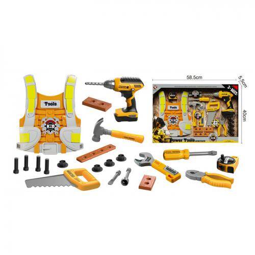 Набір iнструментів жилет, шуруповерт, насадки, молоток, пила, плоскогубці, викрутка, рулетка, болти, на батар., в кор. 58,5*40*5,5см (12шт)