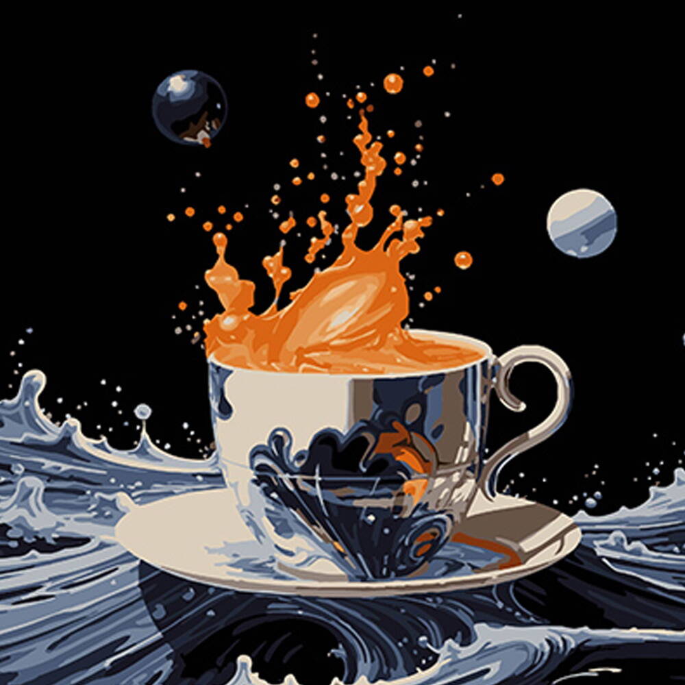Картина за номерами Абстрактна чашка на воді на чорному фоні 40х40см, термопакет, ТМ Стратег, Україна