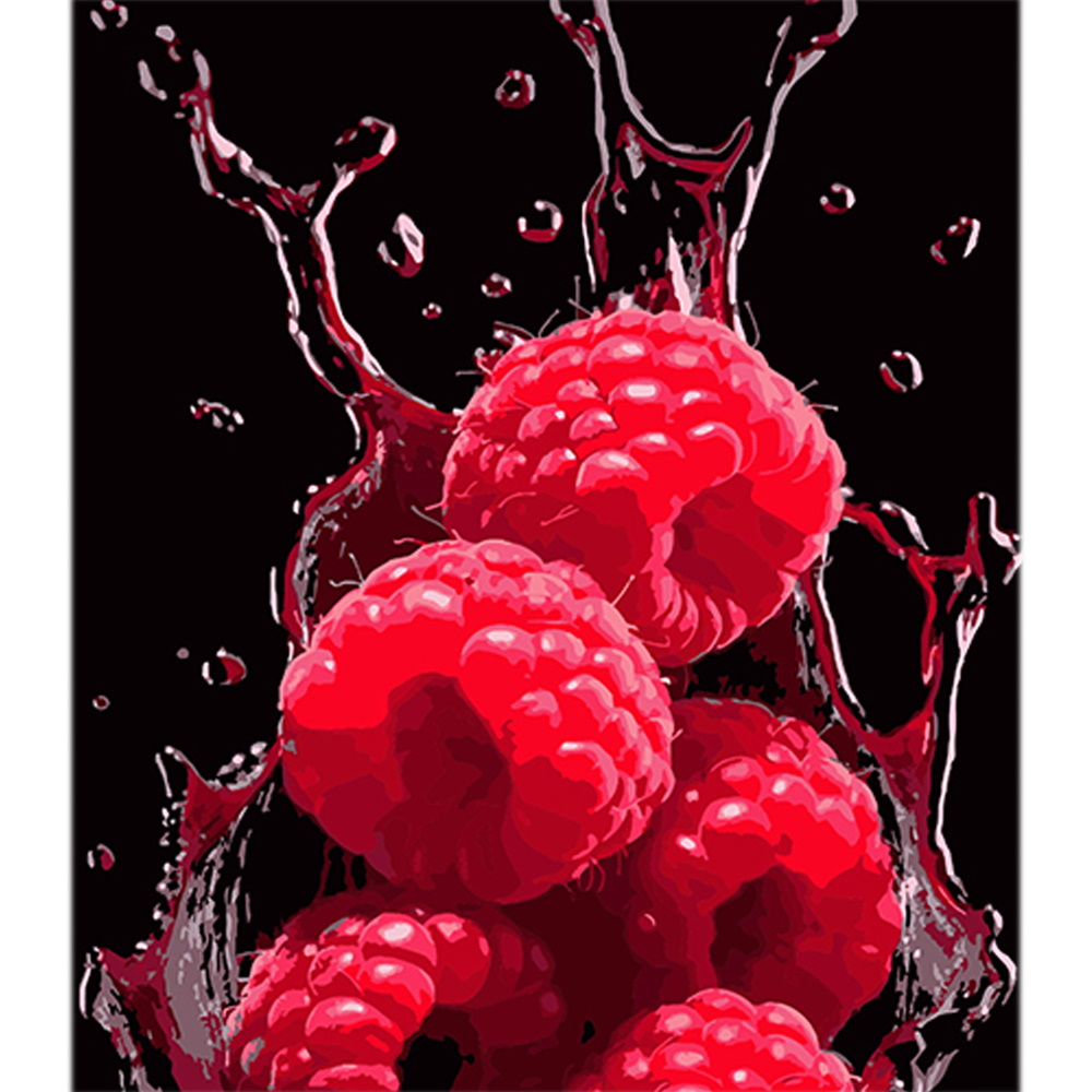 Картина за номерами Малина і водні фантазії на чорному фоні 40х50см, термопакет, ТМ Стратег, Україна