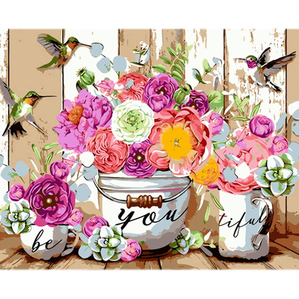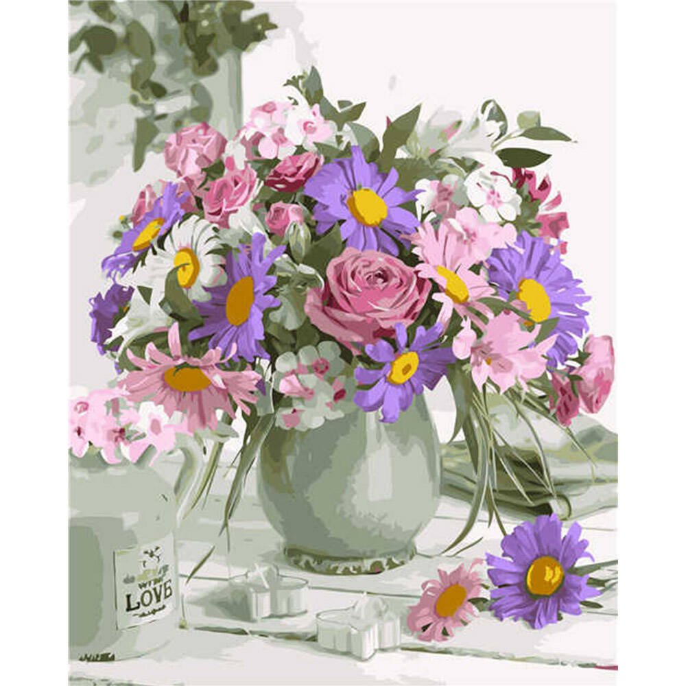Картина за номерами "Квіти у бутлі" на кольоровому фоні, 40х50см, термопакет, ТМ Стратег, Україна