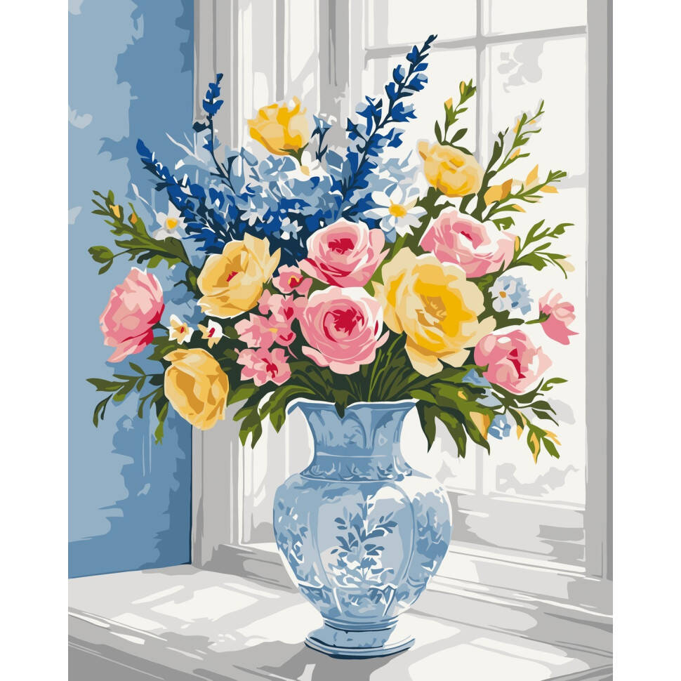 Картина за номерами Чарівний букет на кольоровому фоні 40х50см, термопакет, ТМ Стратег, Україна