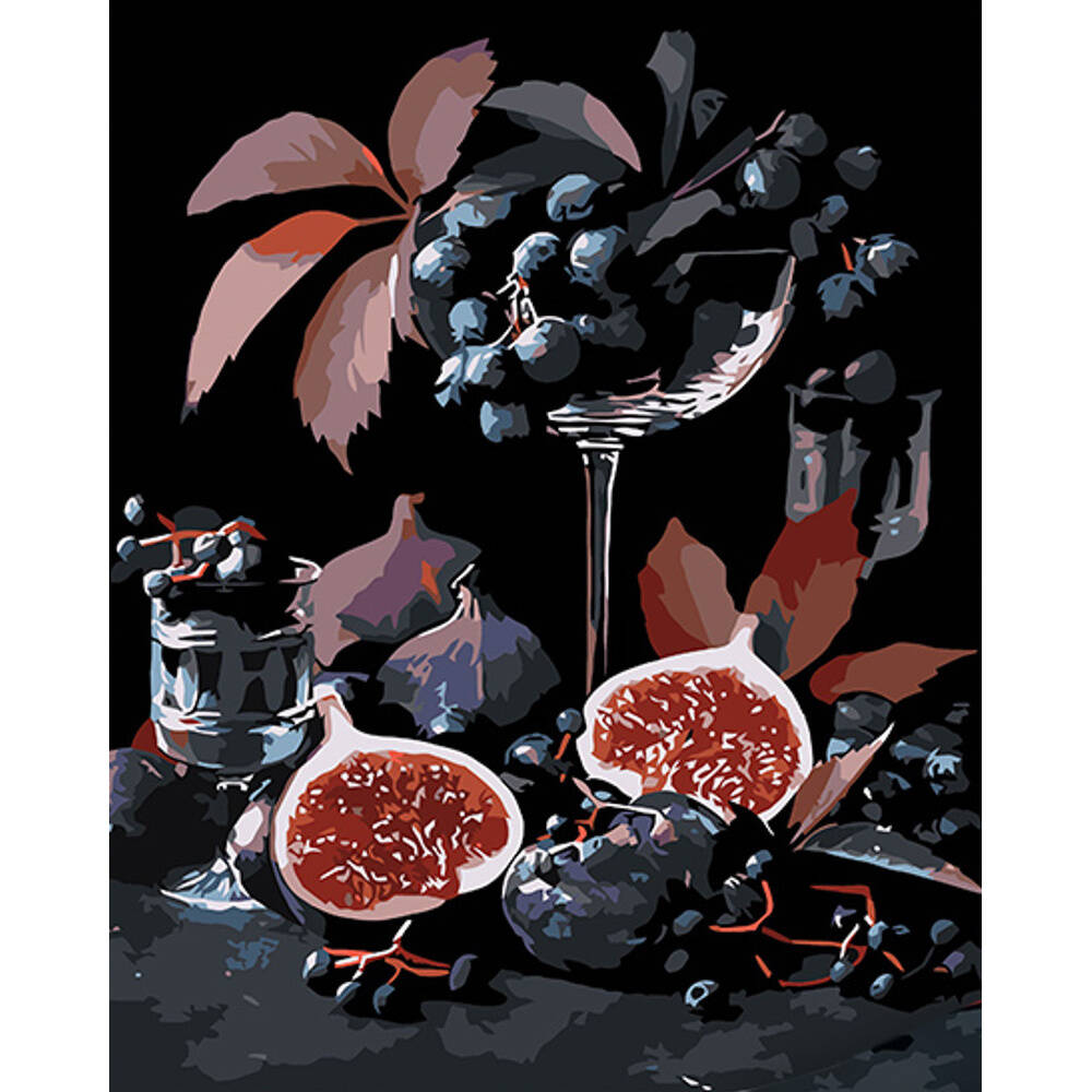 Картина за номерами Інжир та виноград на чорному фоні 40х50см, термопакет, ТМ Стратег, Україна