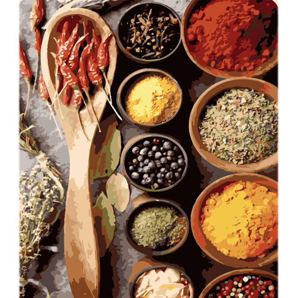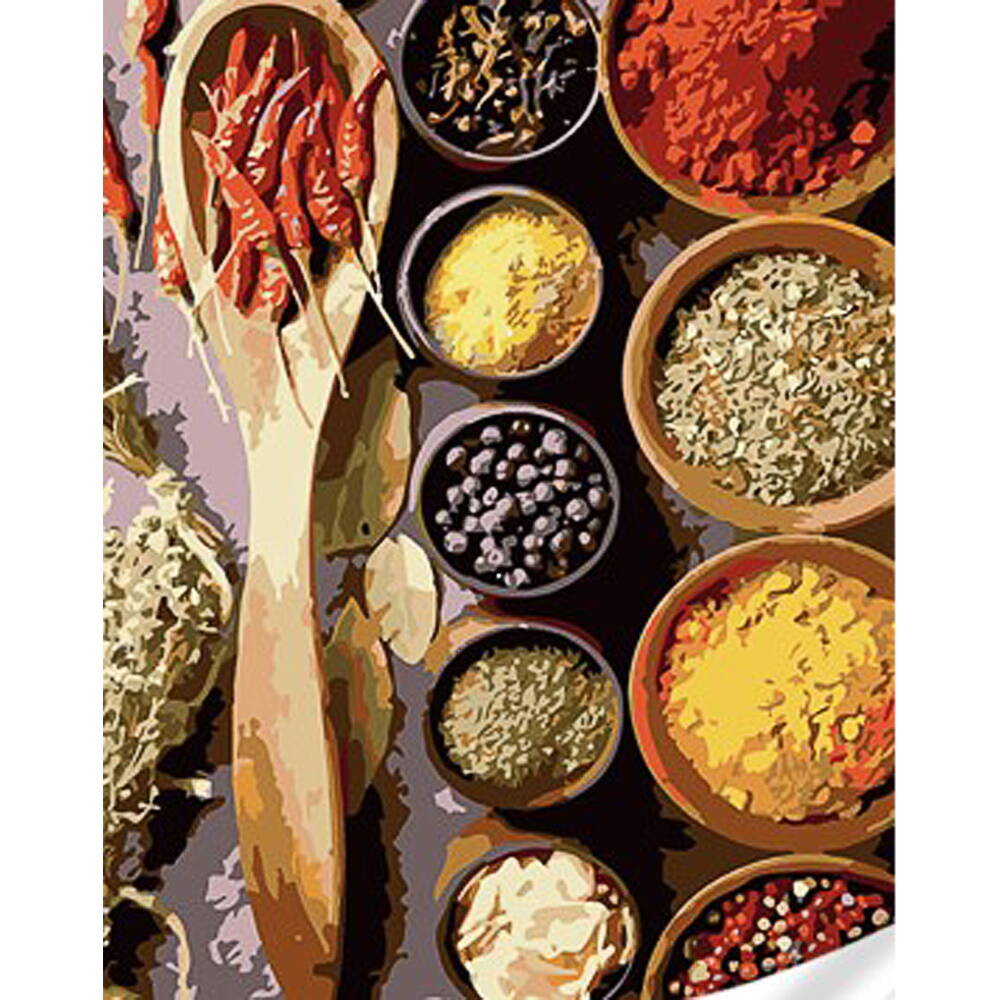 Картина за номерами Набір спецій на кольоровому фоні 40х50см, термопакет, ТМ Стратег, Україна