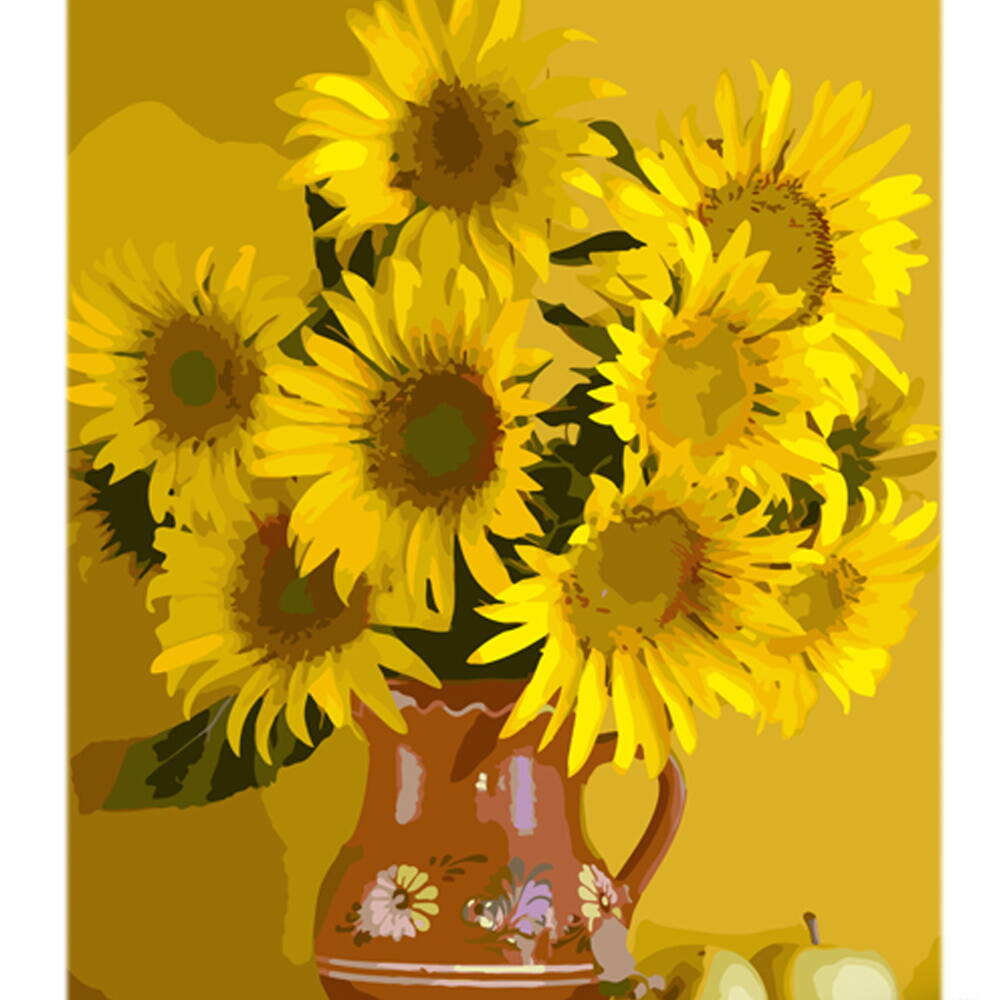 Картина за номерами Соняшники у глиняному глечику на кольоровому фоні 40х50см, термопакет, ТМ Стратег, Україна