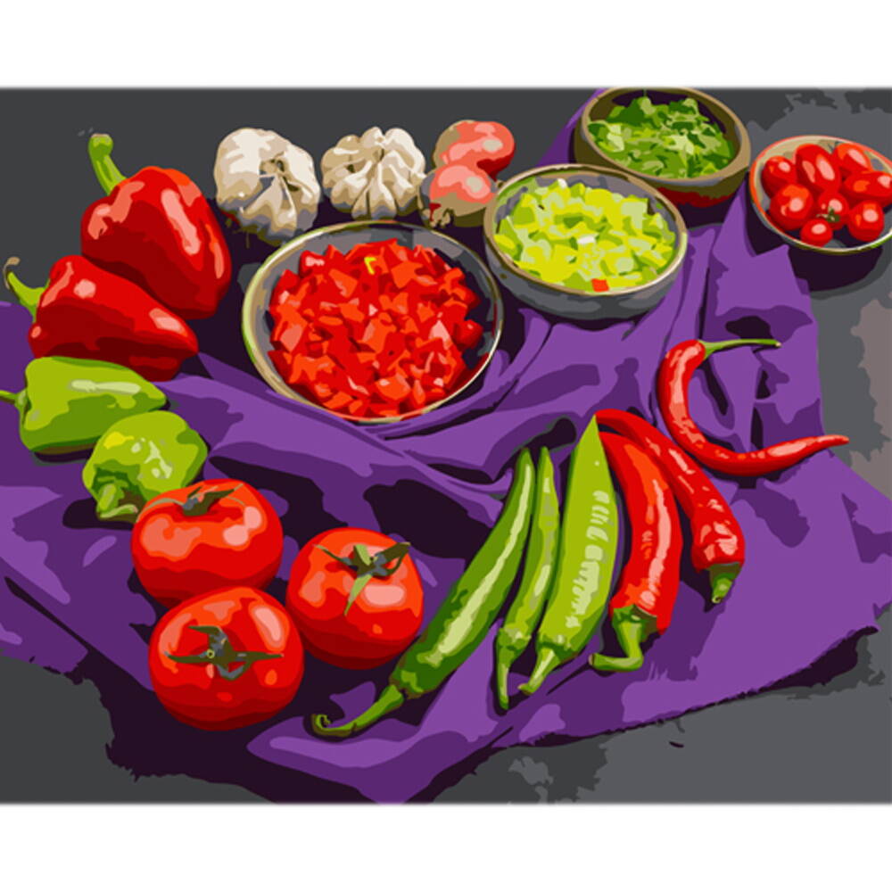 Картина за номерами Різноманіття овочів на кольоровому фоні 40х50см, термопакет, ТМ Стратег, Україна