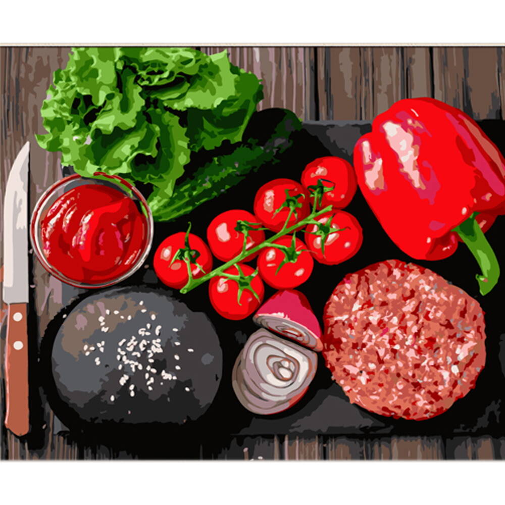 Картина за номерами Овочевий асортимент на кольоровому фоні 40х50см, термопакет, ТМ Стратег, Україна