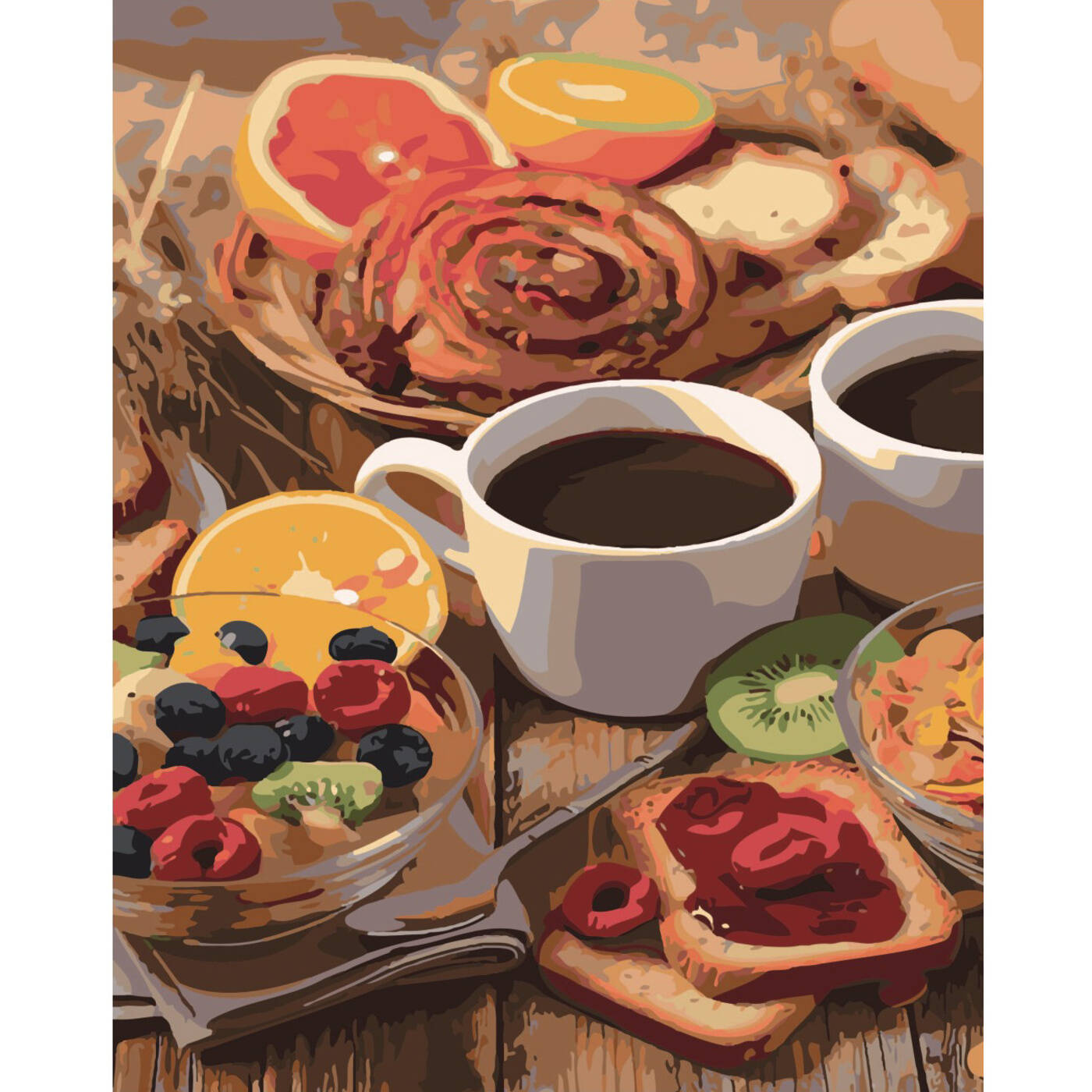 Картина за номерами Ранкові солодщі до кави на кольоровому фоні 40х50см, термопакет, ТМ Стратег, Україна