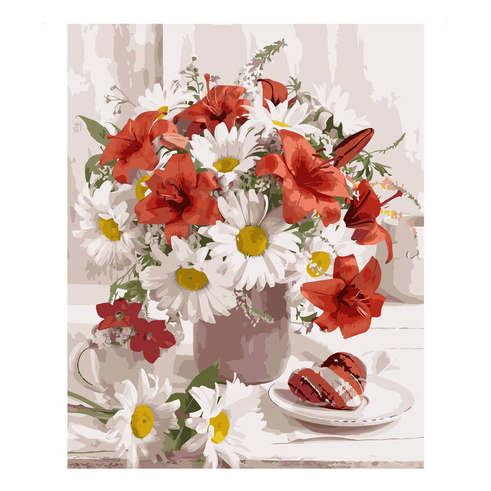 Картина за номерами "Ранкові квіти" на кольоровому фоні, 40х50см, термопакет, ТМ Стратег, Україна