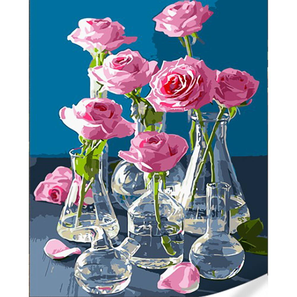 Картина за номерами Троянди у скляних вазах на кольоровому фоні 40х50см, термопакет, ТМ Стратег, Україна
