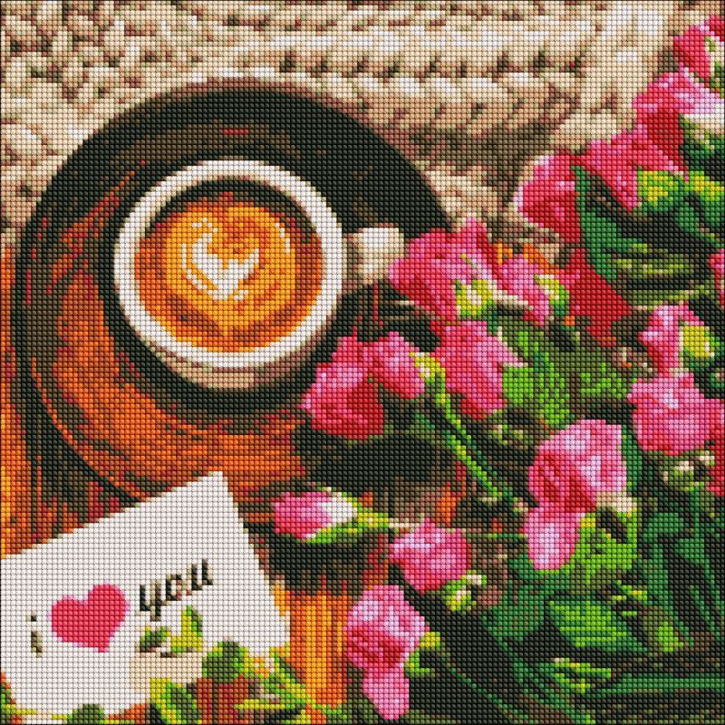 Алмазна мозаїка Еспресо для двох 40х50см квадратні каміння-стрази, термопакет, ТМ Стратег, Україна