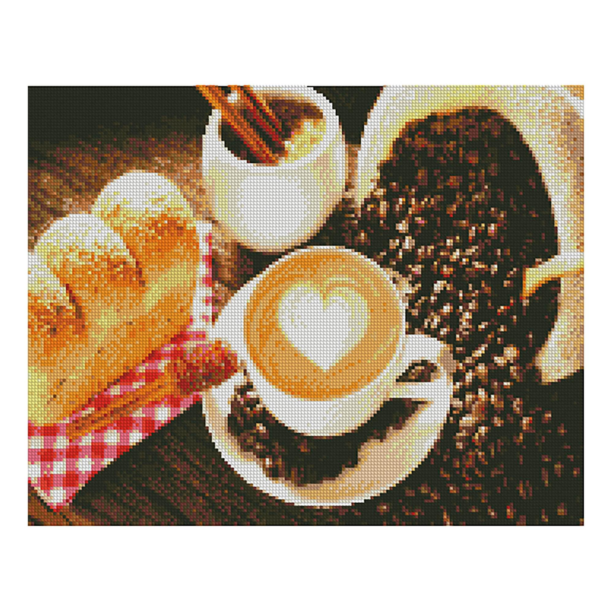 Алмазна мозаїка Кава з печивом 40х50см квадратні каміння-стрази, термопакет, ТМ Стратег, Україна