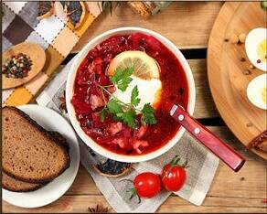 Алмазна мозаїка Смачний борщ 30х40см квадратні каміння стрази, термопакет, ТМ Стратег, Україна