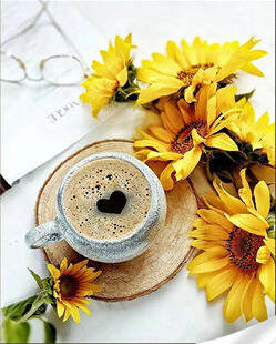 Алмазна мозаїка Кава з соняшниками 30х40см круглі каміння стрази, термопакет, ТМ Стратег, Україна