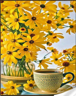 Алмазна картина Соняшники до кави, 30х40см круглі каміння-стрази, в кор. 41*31*2,5см, ТМ Стратег, Україна