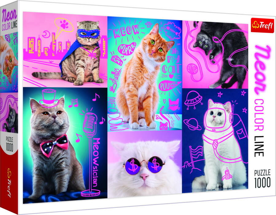 Пазли 1000елм. Неонові малюнки: "Супер коти", в кор. 40*27*6см, ТМ Trefl, Польща