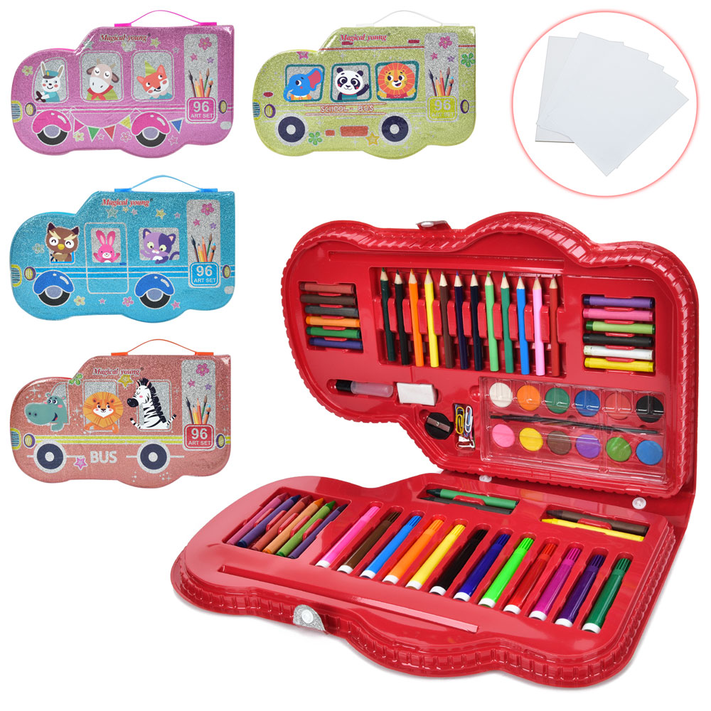 Набір для творчості акварельні фарби,фломастери, олівці, воскова крейда, 96 предметів, 4 види, пенал, 39*23,5*4см (24шт)