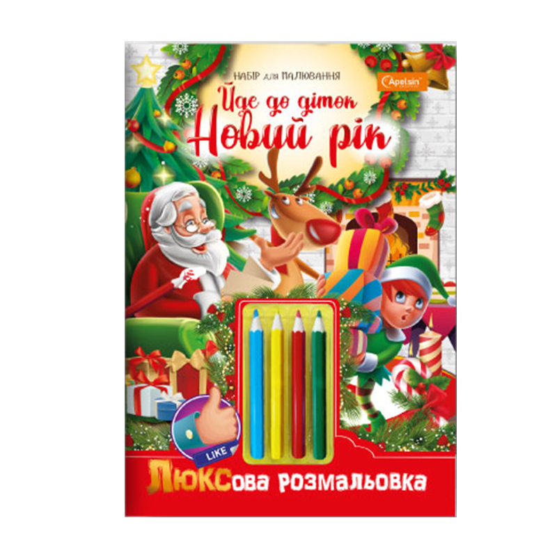 Набір для творчості "ЛЮКС розмальовка з кольоровими оівцями "Іде до дітей Новий Рік", 21*30см, Видавництво Апельсин, Україна