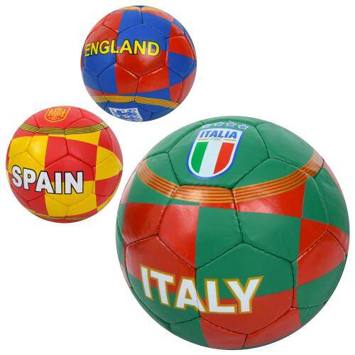 М'яч футбольний, розмір5,ПУ1, 4мм,ручна робота, 32панелі, 400*420г, 3види (країни), пак. (30шт)