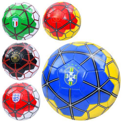 М'яч футбольний розмір 5, ПУ1,4мм, ручна робота, 32 панелі, 400-420г, 3види(країни), пак. (30шт)