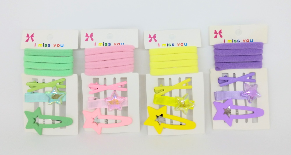 Набір аксесуарів для волосся 7шт/наб (4 резинки, 3 шпильки), планшет 12,5*7см (1200наб)